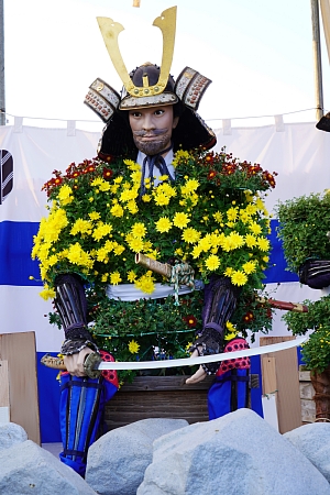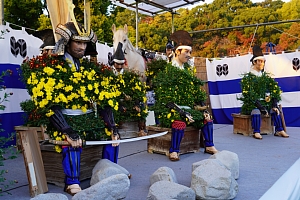 又菊池市の歴史を伝える菊人形も登場して南北朝時代に菊池一族が奮戦した「太刀洗いの場」や、「袖ヶ浦の訣別」などの場面が繊細な菊人形で再現されました。